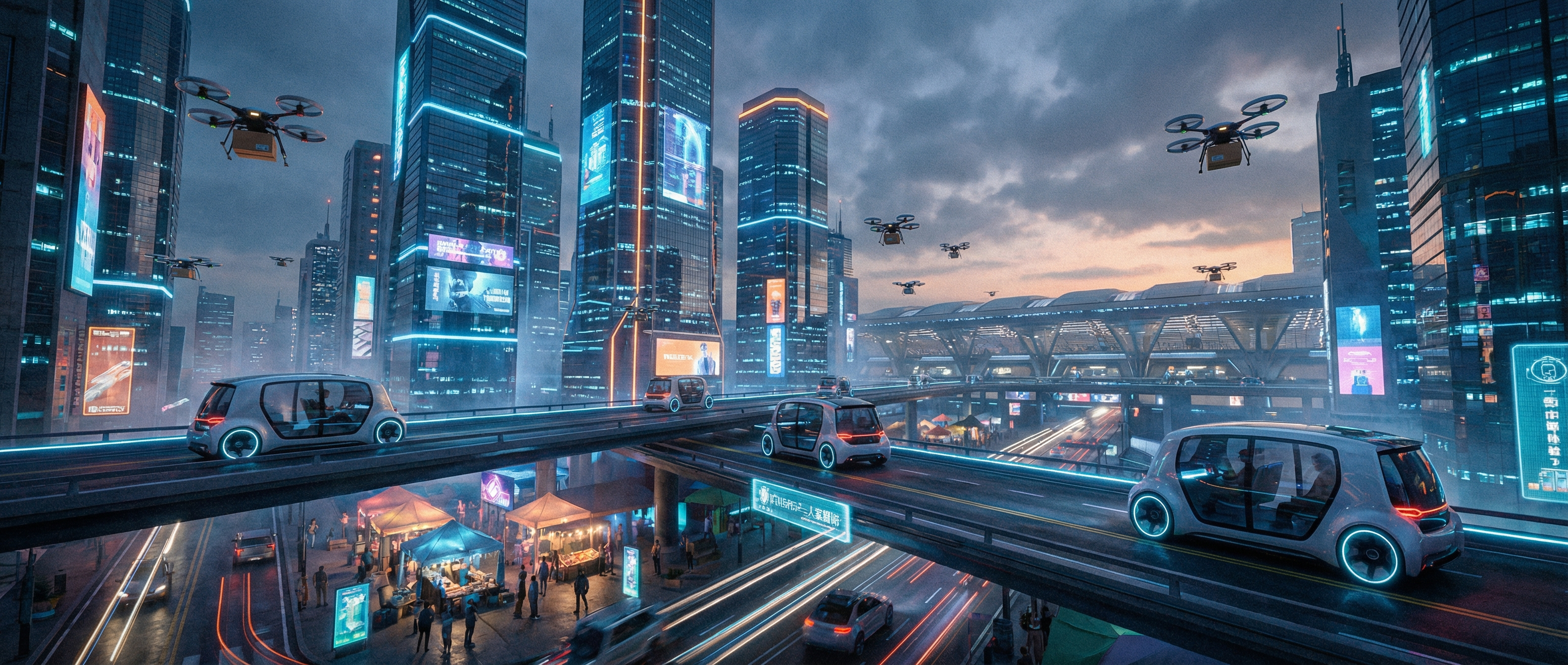 窗外的上海正在甦醒,無人機群從天際掠過,地面上的自動配送機器人正在為早餐店運送新鮮食材。
